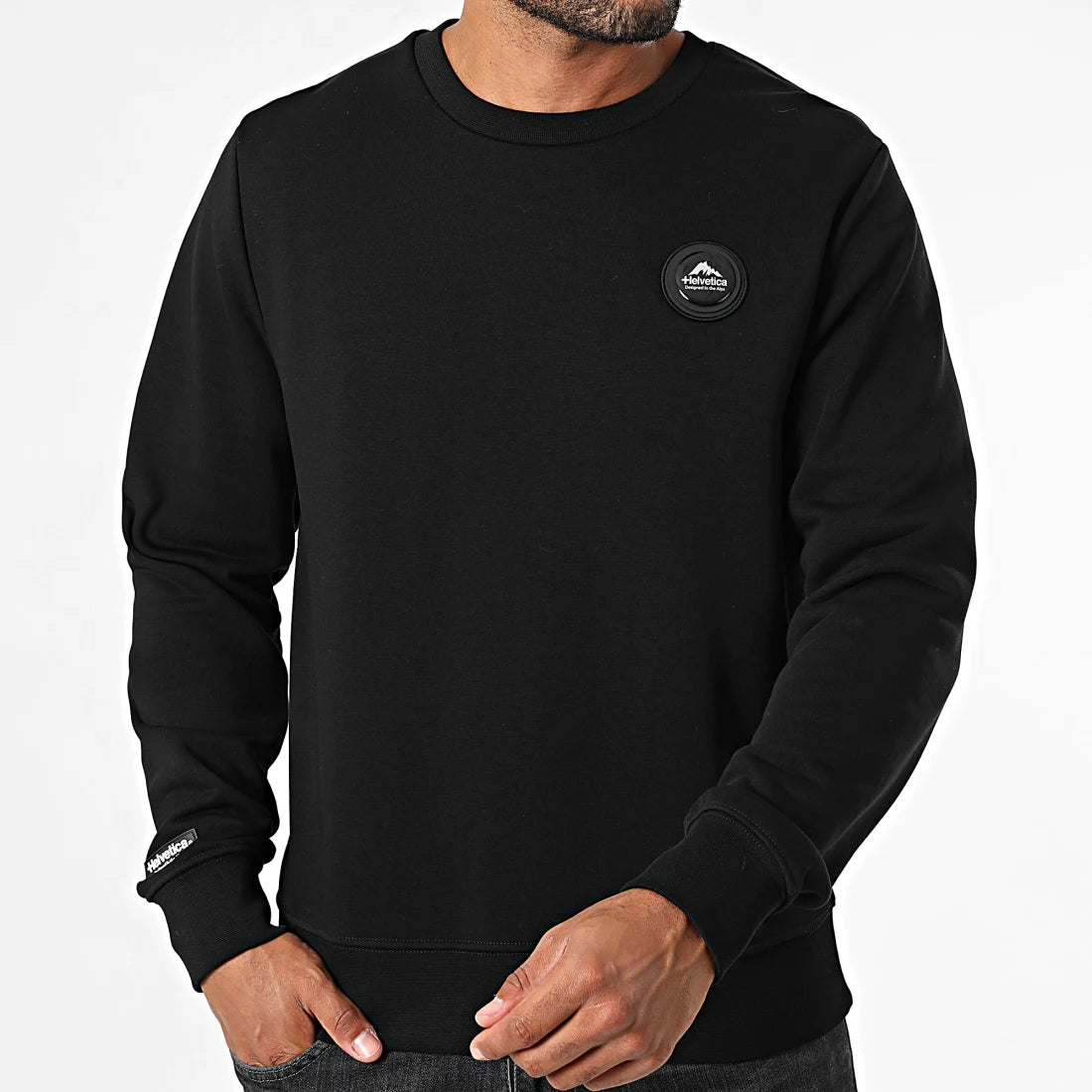 • Sweat crewneck tendance avec patch Helvetica brodé à l'avant